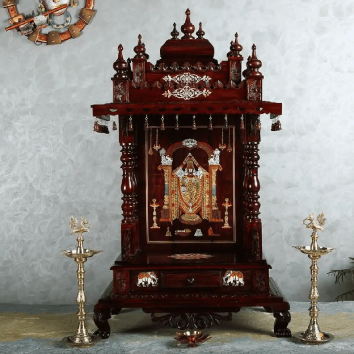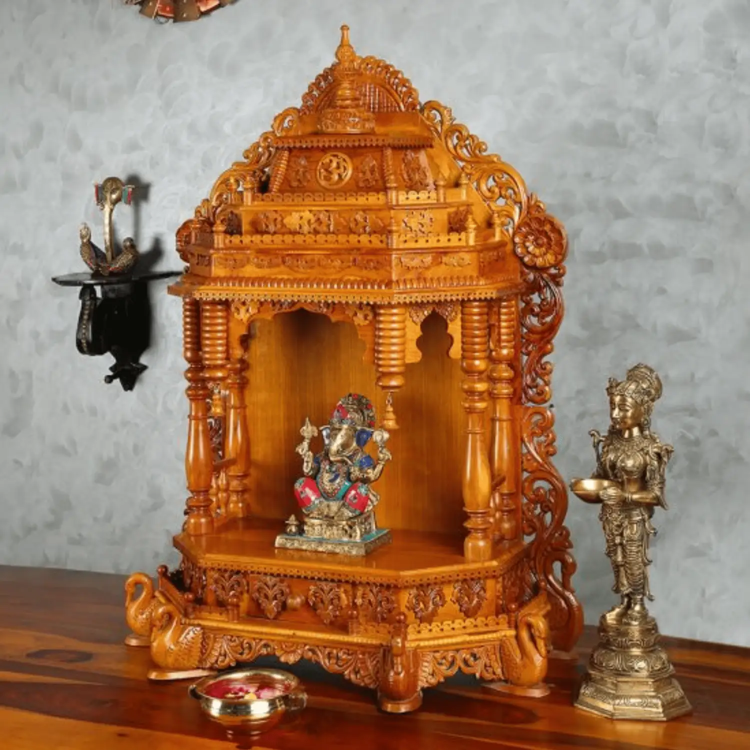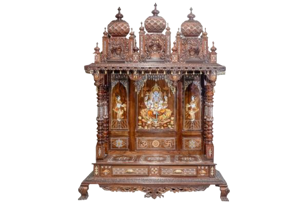 For pooja rooms, we use only premium rosewood and teakwood. Our Ganesh statue for home decoration and other deities are crafted from high-quality brass, wood, or resin—all chosen for their durability and aesthetic appeal.